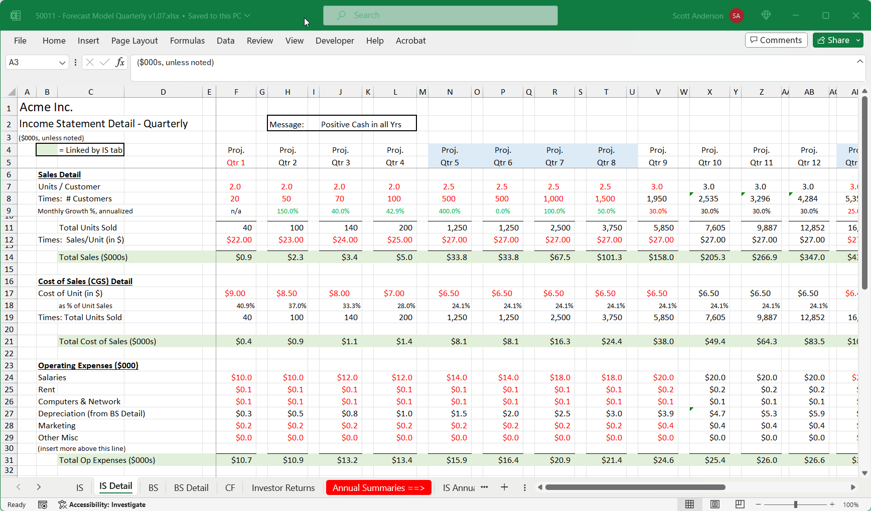 The Anderson Financial Services (AFS) Forecast Model is a detailed Excel workbook containing the 3 primary financial statements: Income Statement (IS), Balance Sheet (BS) and Statement of Cash Flows (CF).